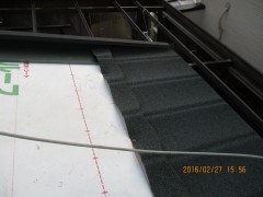 昔に比べますと、防水シートも格段の進化を遂げ、グレードや付帯性能、また価格帯に応じて様々な製品が選べます。今もっともポピュラーなのがゴム系アスファルトルーフィングで、申し分のない性能がありますが、今回はとことん断熱にこだわる施工をさせていただきますので、遮熱性と透湿性に優れた製品を採用しました。