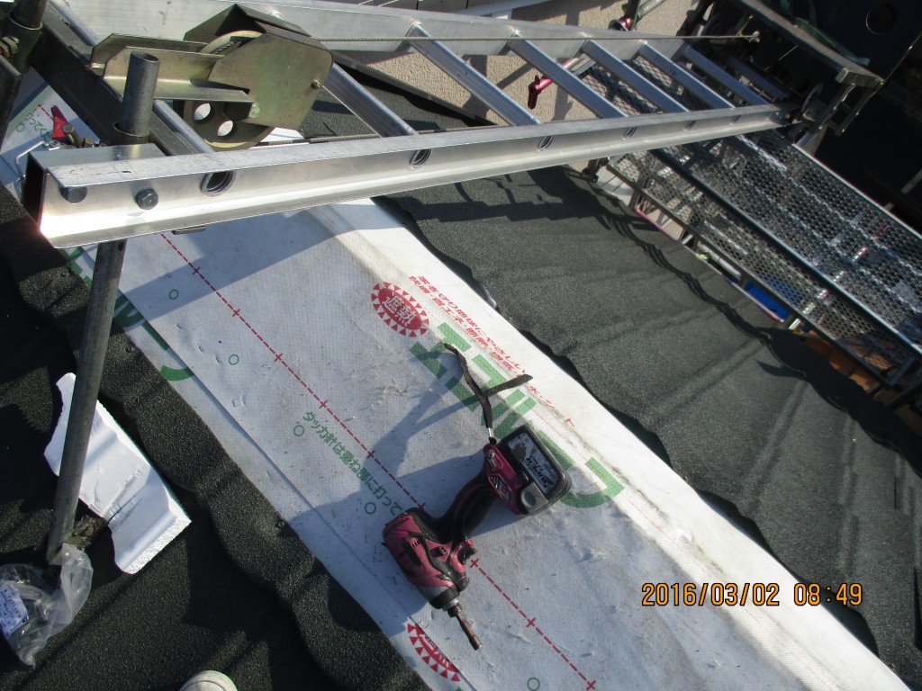 金属瓦の板金役物を取付けます。