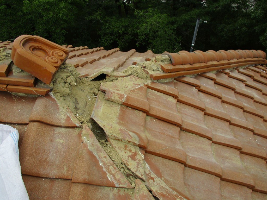 築35年以上の瓦屋根ですが、棟の一部を除いては瓦も葺き土も健全でしたので、棟一部の修繕と漆喰塗り直しをさせていただく事になりました。