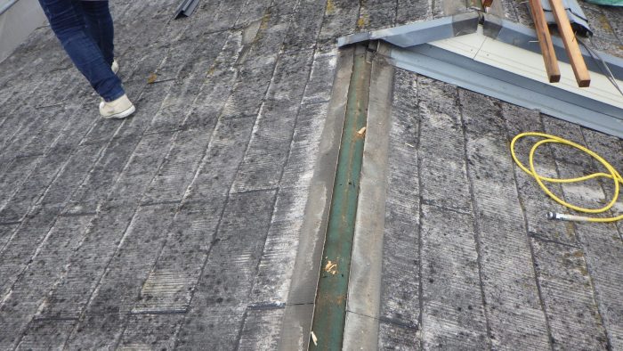 施工実績 右京区 M様邸 内外装改修工事 右京区にお住まいのM様邸で、屋根葺き替え工事・外壁張替及び外壁塗装工事・サッシ窓入替サッシ窓断熱工事等、内外装で大規模な修繕工事をさせていただきました。 今回の工事をさせていただいた発端は、金属サイディング張り外壁部からの雨漏りのお困りごとからでした。数年前、M様邸のお向かいの同じくM様邸で同様のお困りごとでご相談を受けまして外壁を調査したところ、金属サイディングの下に防水透湿シートが張られていない事が判明しサッシ窓開口部から雨漏りしている原因を突き止めました。現在は金属サイディングを直接張るという事はまずは無い事だと思いますが、築20年~35年くらいの新築物件では結構な確率で張られていないケースがあります。シートを張らないとサッシ窓開口部のシールが劣化すれば雨水が侵入して漏れますしサッシ窓の上部にサイディングのジョイントが来れば更に雨漏りのリスクが上がります。同じ分譲地での雨漏り案件のため、シートが張られていない可能性が高く今後のメンテナンスも考えて、窯業系サイディングへの張替えをさせていただきました。外壁を撤去したところ、やはりシートは張られていませんでした。 防水透湿シートを張り、開口部廻りは防水テープで処理をして通気胴縁工法で窯業系サイディングを張らせていただきました。 窯業系サイディングを張り終えたら、サッシ窓開口部やジョイント部にシーリングを打ちます。その後、雨樋を交換します。 屋根葺き替え工事に取り掛かります。今回の工事は、既存スレート化粧板を撤去せずにアイジー工業のスーパーガルテクトでカバー工法を行いました。現在、材料費を含む100万円を超える改修工事は石綿含有建材調査と行政への報告が義務付けられています。M様邸におきましては規模の大きい改修工事となりましたので、建物全ての調査を行いました。既存スレート化粧板はその製造された時期と、建物の竣工の時期と照らし合わせて石綿含有建材である事がほぼ間違いないとの判断のもと、みなしと判定しました。調査においては検体採取、分析をせずみなすということも認められています。 既存スレート化粧板の棟板金、木下地を撤去して所定の開口部を設けます。その後改質ゴムアスファルトルーフィングを張ります。 屋根材を葺くために必要な部材を取付け、本体を改修用ビスで留め付けていきます。 換気棟の設置にかかります。 あらかじめ設けておいた開口部のルーフィングを切り取り、木下地を取付けます。防水透湿シートを張り、板金を被せていきます。 屋根葺き替え工事が完了しました。換気棟は開口部1800mmを2台設置し、充分な換気量を確保しました。これにより、屋根を単に葺き替える工事ではなく住宅性能を上げるリノベーション工事としてM様にお引き渡しをする事が出来ます。 今回の工事では、屋根の葺き替え工事や外壁塗装工事だけでなく窓の入替工事もさせていただきました。建物の性能を高めるには、屋根の断熱だけでなく窓断熱が非常に効果があります。現在、国政として国も省エネ化を進めており窓の入れ替えや内窓の設置などに補助金を付けており今回の工事では窓の入れ替えを4台、内窓の設置を4台計8台のサッシ窓工事をさせていただきました。結構な額の補助金を申請させていただきました。窓の入れ替えでアルゴンガス入りLow-E複層ガラスにする事により、高い断熱効果を得られまた防音効果、結露対策にもなりM様には大変お喜びいただきました。 サッシ窓の入替工事には内装工事と外装工事が必要となります。既存サッシ窓の撤去の際、内装と外装のどちらも手入れる事になります。外装工事では、サッシ窓の入れ替え後モルタル壁の復旧・吹付けによる柄の復旧・外壁塗装が必要となります。 外壁塗装に取り掛かります。エスケー化研水性セラミシリコンを使用させていただきました。 外壁塗装が終えると足場を解体します。上の写真は各内窓設置の前、後となっております。補助金の正式名称は住宅省エネ2023キャンペーンといいまして、今回M様邸で申請したのは先進的窓リノベ事業という事業です。窓断熱を行うことで補助金が受けられる制度ですが、予算の規模も大きく費用対効果の高い断熱工事に対して、しっかりとした金額の助成を受けることができます。今年度につきましては、工事期日や予算の消化等で申請はもうできませんが2024年度も制度設計の変更はあるものの引き続き行われるとのことなのでご興味がございましたら、正規登録業者である弊社にお問い合わせください。 最後にM様 今回も工事をお任せいただきまして誠にありがとうございました。 南区 U様邸屋上防水改修工事 前の記事 上京区 B様邸外装改修工事 次の記事