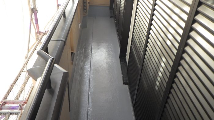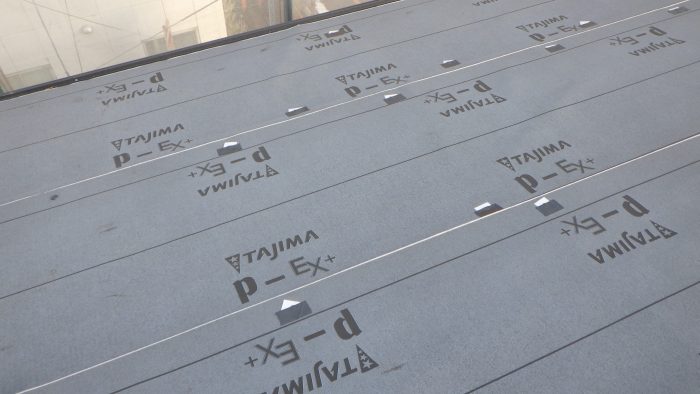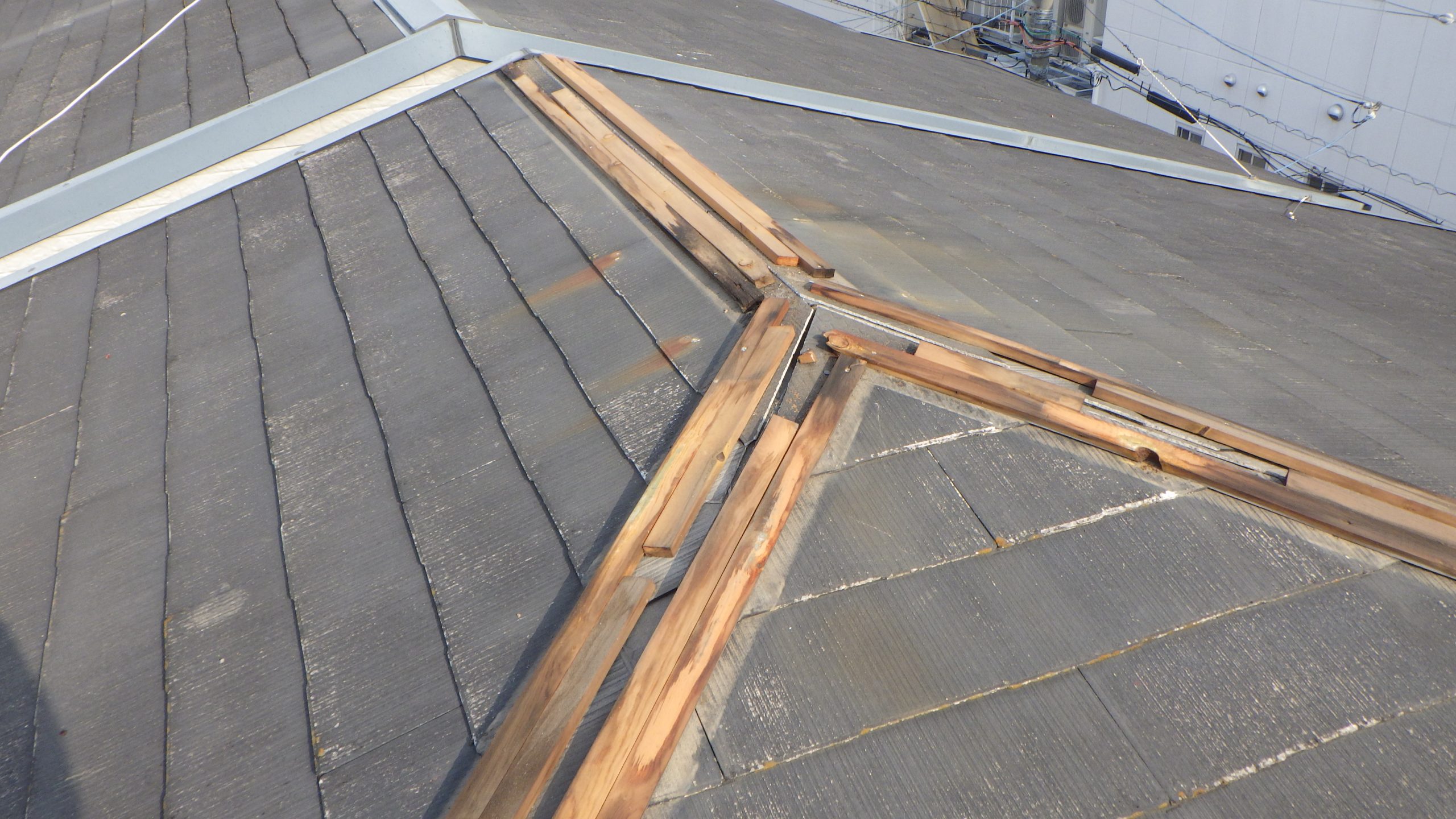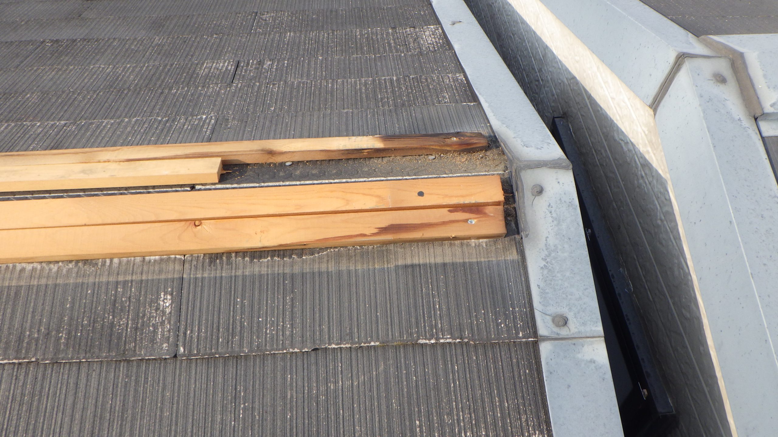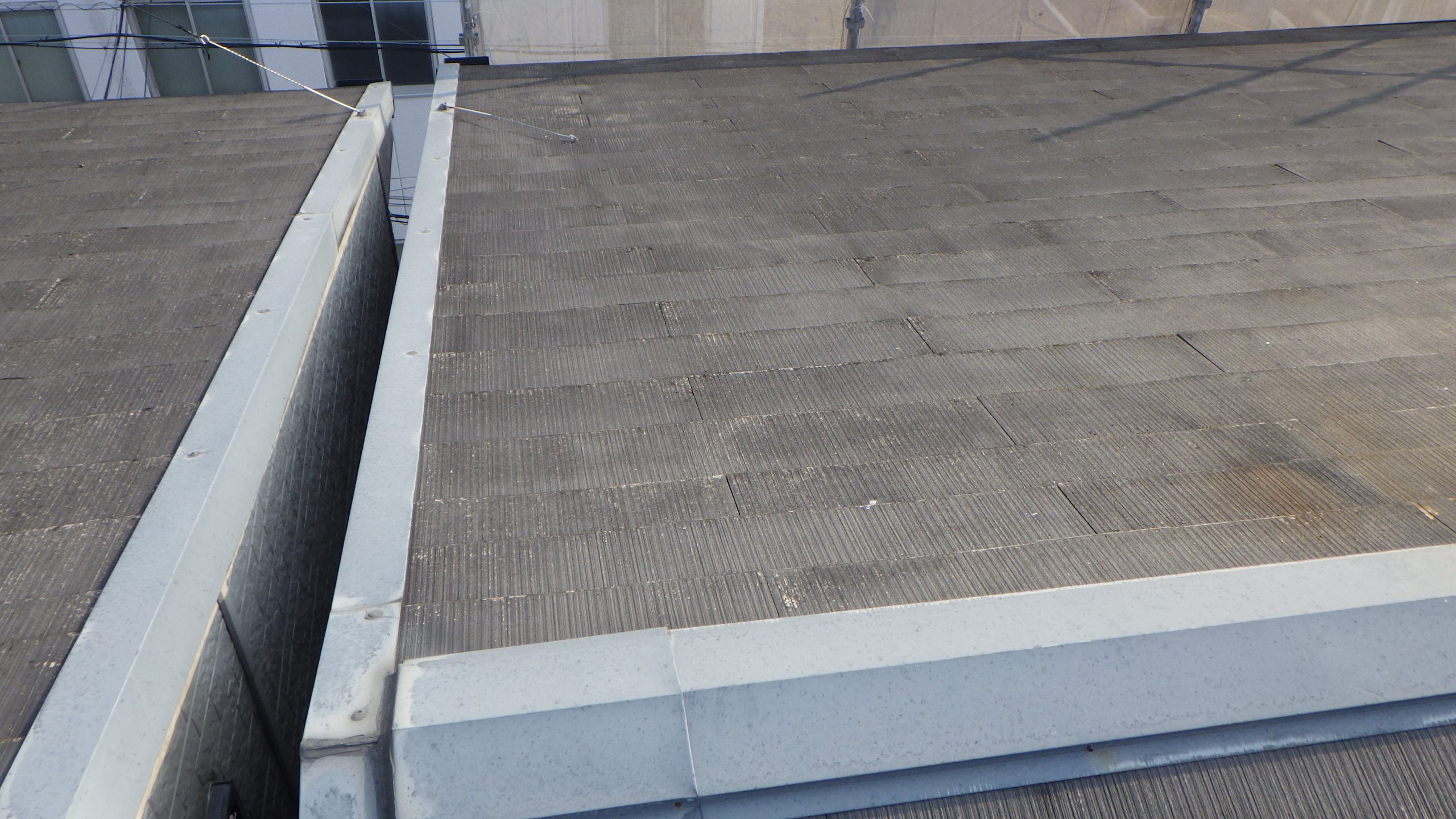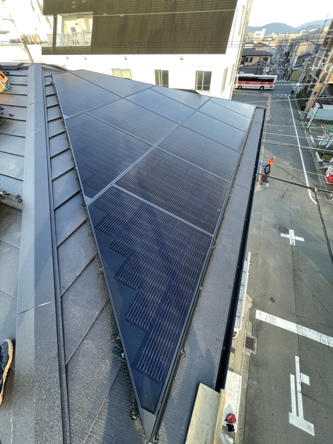 施工実績 下京区 T様邸 外装改修工事 下京区でT様のご依頼により、屋根葺き替え工事カバー工法・外壁塗装工事をさせていただきました。お引き渡し後、T様により、太陽光発電システム設置工事をお手配いただきました。 お屋根に太陽光発電システムの設置をご計画されたT様からご相談をお受けしました。既存スレート化粧板を撤去して、金属屋根を葺いてその上に太陽光を設置するか既存スレート化粧板にカバー工法でスーパーガルテクトを葺いて、太陽光を設置するかご検討をいただいた結果、カバー工法で屋根を葺いて、掴み込み支持金物で太陽光パネル架台を支持する工法で工事をさせていただくことになりました。この工法ですと、既存スレート化粧板の撤去処分に係るコストを削減、工期短縮を図れる上に掴み込み支持金物による架台固定が出来るため、屋根に直接ビス等を打つ事無く雨漏りのリスクを回避出来ます。また大型台風などに備えて、屋根材の野地板保持力を更に強固にするため、本体を63mmの改修用ビスで垂木上に留め付けました。 まず不要な付帯物(棟板金や木下地)を取り除きます。 改質ゴムアスファルトルーフィングを敷き、ビス等で固定します。風による飛散や、ずり落ちを防ぐためです。 あと換気棟の開口を設けます。 板金役物や棟下地を取り付けていきます。 軒先水切りやケラバ水切りを取り付け、棟下地に捨て水切りを取り付けます。本体を葺く前に事前に割り出した垂木の位置をルーフィング上にトレースして墨出しを行います。 本体を葺いていきます。 ルーフィング上の墨出し線に合わせて改修用ビスを垂木まで効かせます。通常カバー工法の場合、改修用ビスは45mm程度で既存野地板に効かせれば充分であり保持力に何ら問題はありませんが、今回は3階建ての屋根に太陽光発電を載せるということで、災害対策としてより強固な固定方法を採用しました。 棟及び換気棟の仕舞いをして作業を完了します。 新しい屋根が出来上がりました。 この上に太陽光発電パネルを載せていきます。 窯業系サイディングの目地やサッシ窓開口部のシーリングの打ち替え、増し打ちを行う前に建物外装部の高圧洗浄を行い、汚れを落とします。 窯業系サイディングの目地のシーリング打ち替えを行います。 カッターナイフで既存シールを切り取り、マスキングの後、プライマーを塗布します。 シーリングガンを使って目地に打って行く訳ですが、適量を打ち、専用ヘラで均していきます。この作業が難しく、ムラの無い均一な仕上りにはいつも感心いたします。 シーリング工事が完了しました。 今回の工事では雨樋は塗装をさせていただきました。 軒樋は外面を、竪樋は金具とも塗装しますが軒樋の吊り金物がかなり錆びていたため、こちらも塗らせていただきました。ワイヤーブラシで錆を落とし、錆止めを一回・ウレタン樹脂塗料を二回塗らせていただきました。 塗面にサンドスポンジで汚れ落とし、目荒らしを施し雨樋、鼻隠し板を塗っていきます。 マスカーテープで非塗装部を養生して、シーラーを一回・水性セラミシリコンを二回塗っていきます。 ベランダ軒天部はビルデックの白色を塗らせていただきました。 出窓の天端や雨戸の鉄部は錆止め塗布の後、ウレタン樹脂塗料を二回塗りいたしました。 外壁塗装工事が完了後、2階に二箇所あるベランダバルコニーの防水床のメンテナンスを行います。高圧洗浄後、更にサンディングを行いプライマーを塗布します。トップコートを塗布した後は排水ドレン口にストレーナーを取り付けます。防水床は定期的にトップコートを塗り替える事が重要です。 屋根工事、塗装工事を終えて足場を解体してT様にお引き渡しいたしました。足場のあるうちに太陽光発電パネル架台の設置、パネルの取り付けをお手配いただきました。太陽光発電システムも美しく屋根の上に納まりました。T様、この度は弊社に工事をお任せいただきまして 誠にありがとうございました。 下京区 T様邸 外装改修工事 前の記事 城陽市 T様邸 外装改修工事 次の記事
